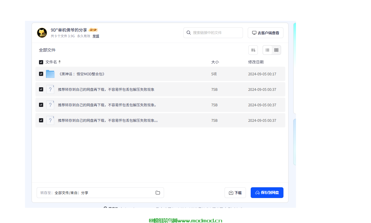 推荐转存到自己的网盘再下载,不容易怀包丢包解压失败现象