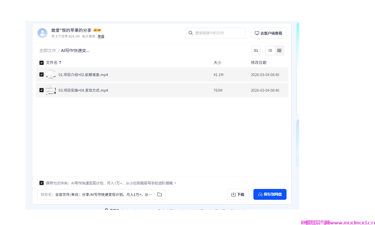AI写作快速变现计划,月入1万+,从小白到高级写手的进阶指南 ┝━01.项目介绍+02.前期准备.mp4 ┝━03.项目实操+04.变现方式.mp4