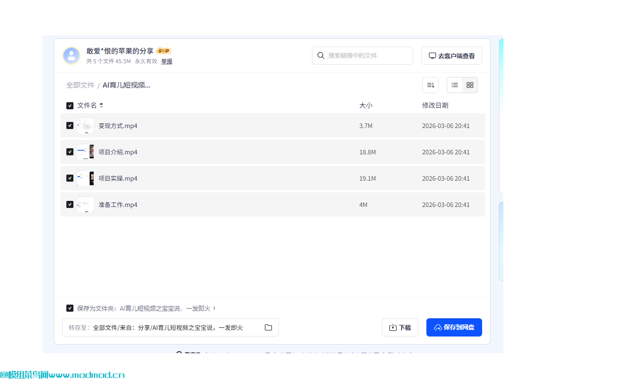 AI育儿短视频之宝宝说,一发即火 ┝━变现方式.mp4 ┝━项目介绍.mp4 ┝━项目实操.mp4 ┝━准备工作.mp4