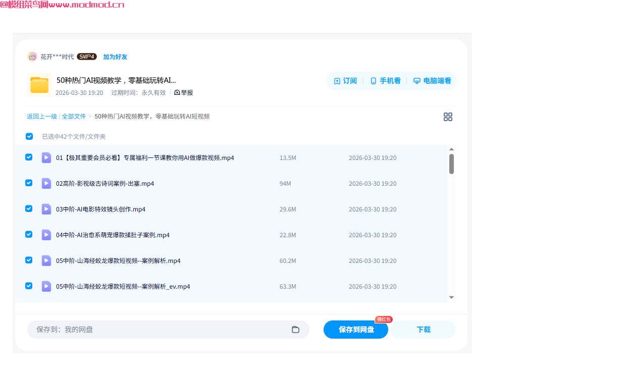 本课程收录50种当下热门AI视频玩法,涵盖多种创意形式,每个案例附详细操作流程、工具推荐与提示词技巧,零基础也能快速上手。帮助创作者高效产出爆款内容,抢占AI短视频流量红利。
